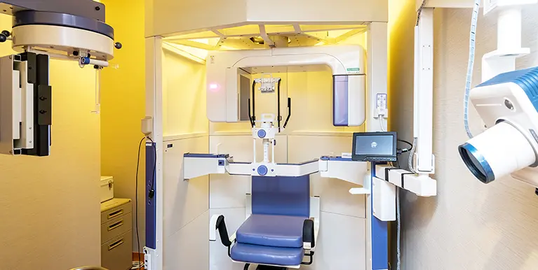 そのほか矯正用のレントゲンや患者様の顔を3次元的にコンピューターに取り込み最適な歯の形や色を導き出す審美用のフェイススキャン、より精度の高い安全な治療を行うためのコンピューターガイドシステムも導入しています。
