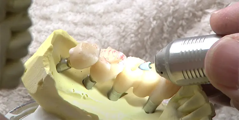 既にリハビリ用の歯を装着して過ごしているので、その形に合わせて最終の歯を作成していきます。
